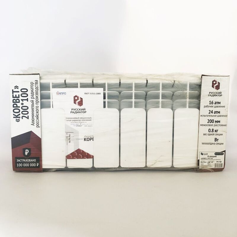 - Радиатор алюминиевый КОРВЕТ-200/100 8 cек. "Русский Радиатор"