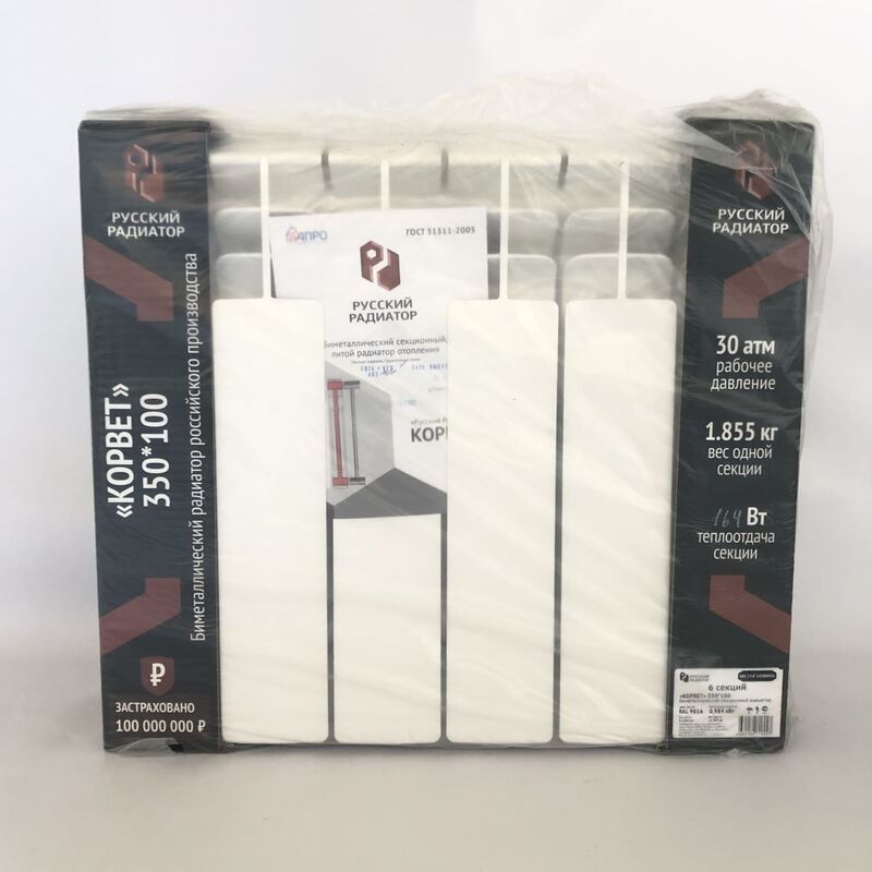 - Радиатор биметаллический КОРВЕТ-350/100 4 сек. "Русский Радиатор"