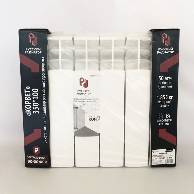 - Радиатор биметаллический КОРВЕТ-350/100 6 сек. "Русский Радиатор"